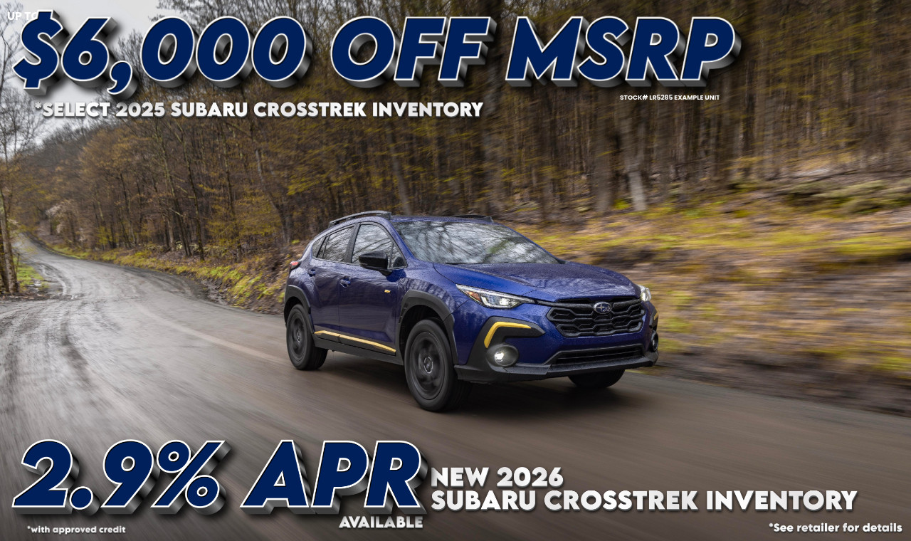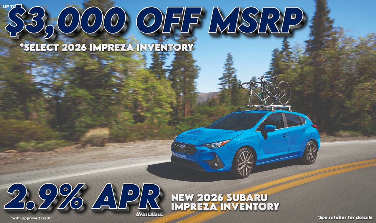 Shop current Subaru specials and let us quote your best option in minutes—online or in-store. Scroll down alot to find your perfect Subaru!